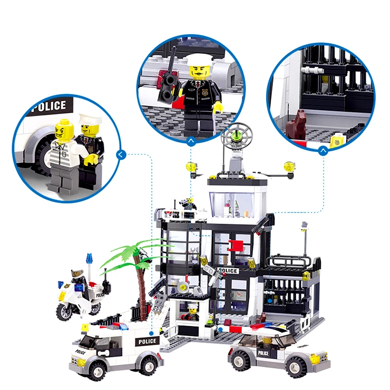 HIGH QUALITY 3D City Street Construction Bricks 6725 Building Block Police Stations Enlighten Children Toy Compa