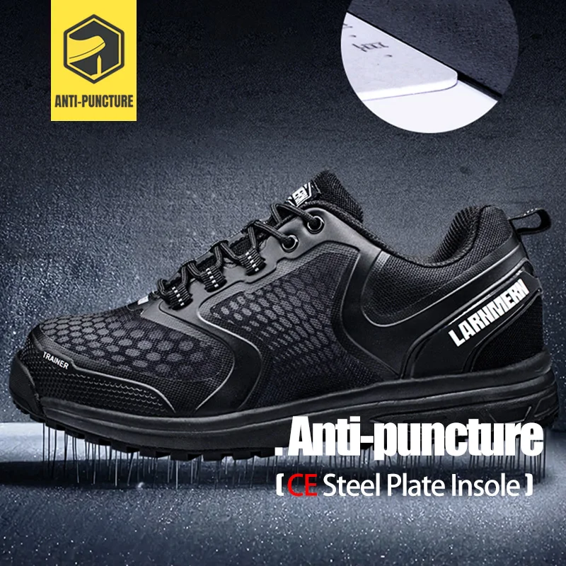 TOP MODYF Men Black Lightweight Steel Toe Cap Work Safety Shoes Anti-puncture Breathable Construction S