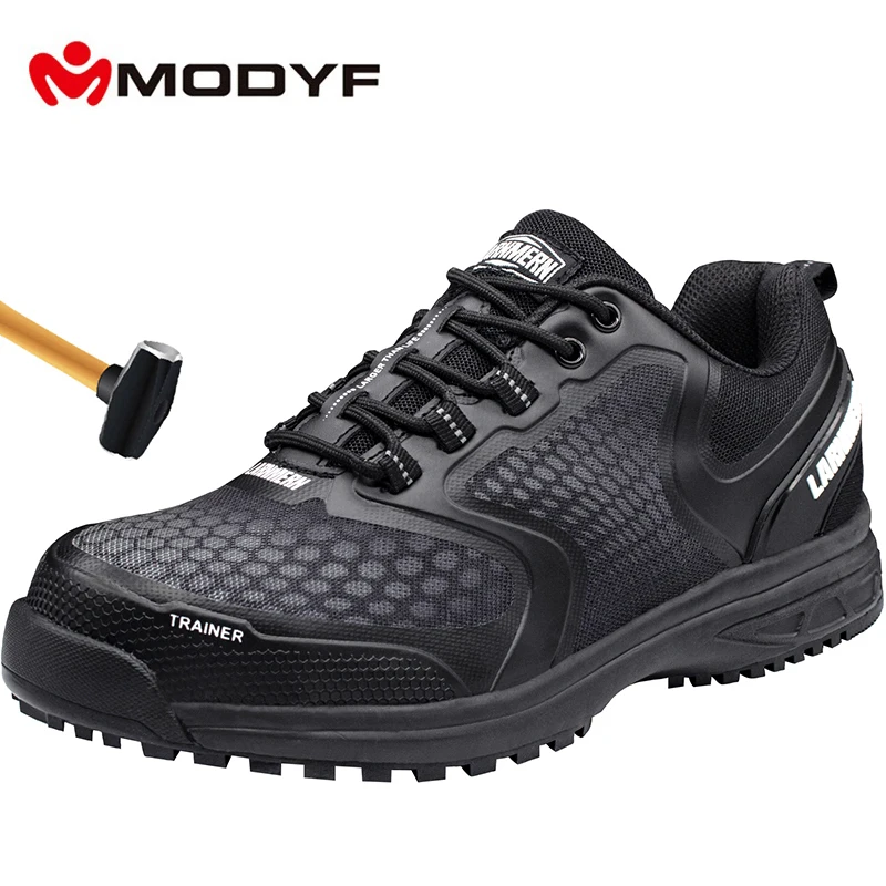 MODYF Men Black Lightweight Steel Toe Cap Work Safety Shoes Anti-puncture Breathable Construction S