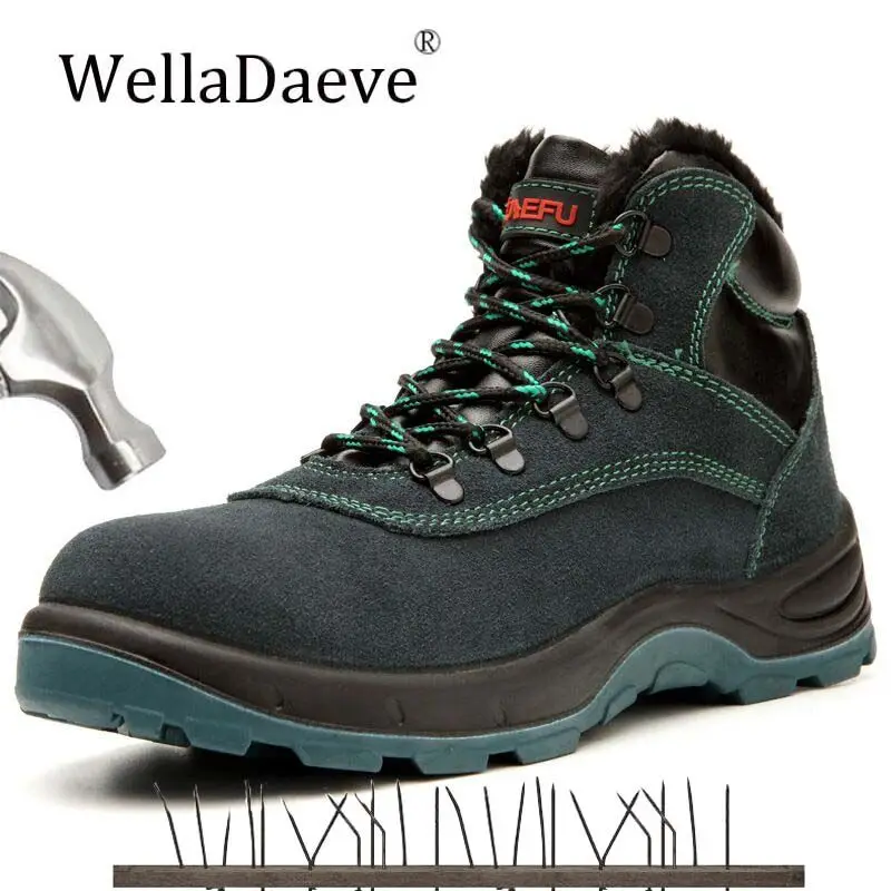 Men's Safety Shoes Winter Plus Velvet High Steel Toe Work Boots Construction Protective Footwear An