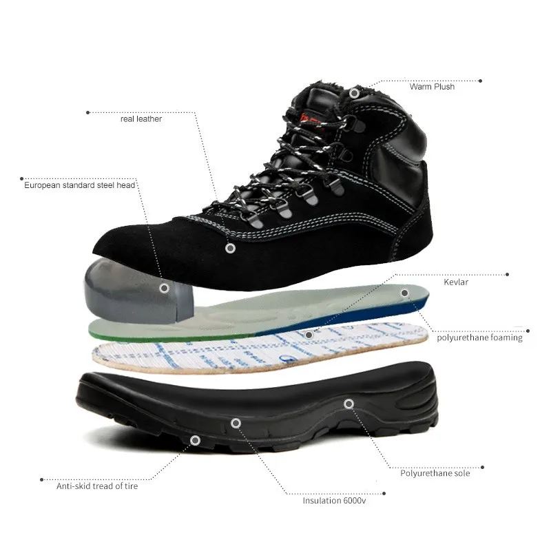 BEST Men's Safety Shoes Winter Plus Velvet High Steel Toe Work Boots Construction Protective Footwear An